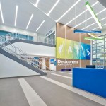 For the aesthetic, the team established a visual connection with the surrounding park. Large windows provide natural light and park views. Various materials veneer the exterior, such as translucent panels, glass and metals, with the latter meant to reflect the neighborhood’s industrial history. Wood tones add warmth.