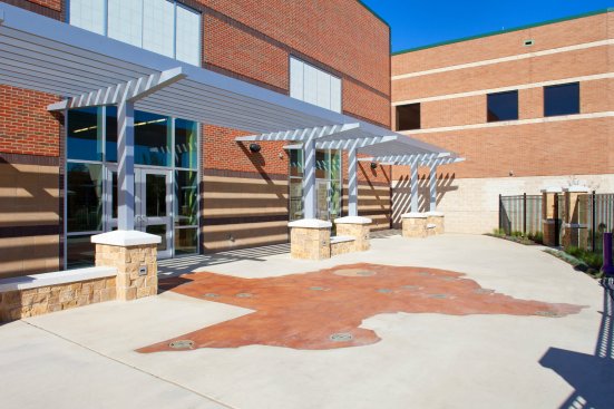 Texas pride is evident throughout this leisure pool facility, which caters to all populations, particularly its extraordinarily active senior community.