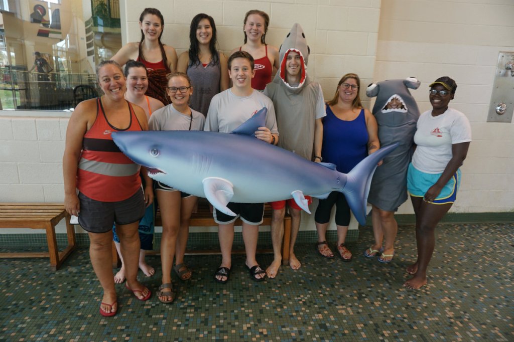 While Shark Day is mainly meant to entertain guests and get more folks into the pool, it also involves team−building exercises. Highlands Park officials say it’s important for staff members to get involved. That’s why lifeguards dress as sharks and warn of impending sharknados.