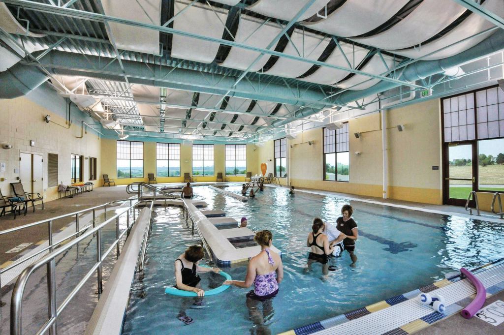 Designers of the J. Leonard Levy Family Wellness Center Warm-Water Therapy Pool at Shalom Park in Aurora, Colo., catered to the mostly senior clientele not only in overall pool design, but also through their choice of surface materials. Because users often are challenged with sight or neurological impairments, the team selected wall and floor finishes that could be easily distinguished. Extra-wide corridors accommodate wheelchairs. Those less steady on their feet find assistance from a variety of grab bars and railings, as well as deck surfaces that are nonslip but gentle on the feet. Purple, blue, beige and white accents tie the aquatics center in with the rest of the wellness facility, aesthetically complement the water and create a soothing environment. Undulating acoustic ceiling baffles help control sound, which can become loud as instructors project their voices to accommodate the hearing impaired. They also reinforce the water theme by visually mimicking waves.