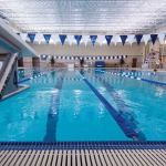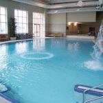 The leisure pool includes stair or pool-lift entry, underwater bench seating, a volleyball net, swim-in-place forced current and a spray feature with an overhead water curtain. The six-lane, 25-yard competition pool includes stair entry and pool lift. The warm-water therapy pool features a swim-in- place forced current, perimeter railings and a hydraulic pool lift.