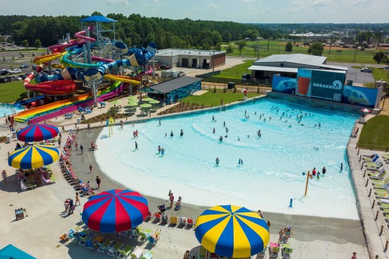 Covering nearly 523,000 square feet, the site includes a 22,000-square-foot wave pool, 14 water slides, a special water play zone for toddlers and several food and beverage options. A Kid Zone includes seven water slides and a play area with four splash-pad stations.