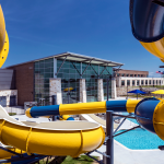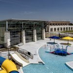 For broad appeal, the design team included a 10,000-square-foot leisure pool with a spray play area, current channel, wet lounge and 770-square-foot toddler pool. Four waterslides round out the area. Inside, visitors find a waterslide, 11-lane competition pool, and a leisure pool with splash play area, play structure, current channel and three additional laps lanes.