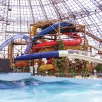 A retractable aluminum roof lets visitors enjoy the weather — or protects them from it — and offers an opportunity for energy savings. Aqua Sferra Waterpark | Donetsk, Ukraine