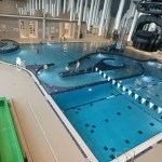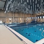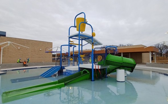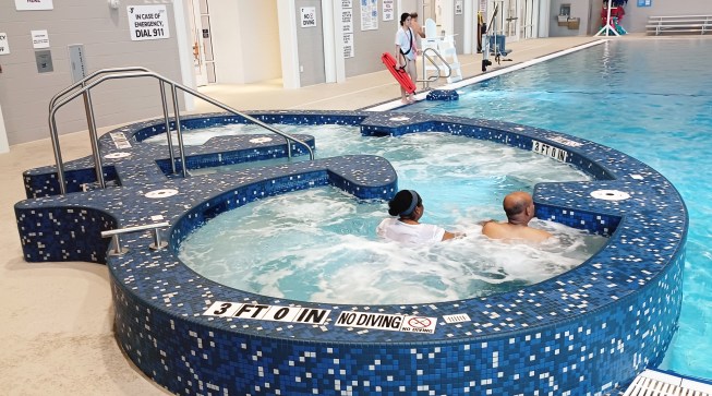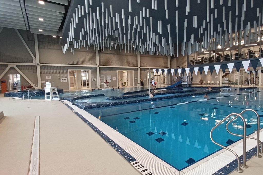 The indoor, multifunctional aquatics facility contains a 5,962-square-foot pool with three lap lanes, geysers, a current channel and children’s play area with interactive water-play features. This will hold most of the programming, such as learn-to-swim lessons, exercise and fitness, as well as lap swimming.