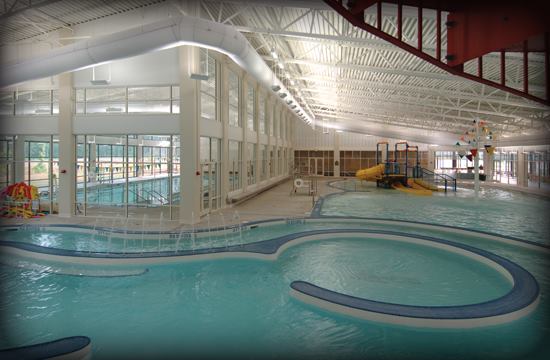 The highlight of the $7.5 million facility is a 6,863-square-foot, indoor leisure pool. Planned as a community attraction with lots of children’s play activities, the leisure pool features a beach entry and a number of amenities to entertain patrons of all ages. In this shallow-water pool is an interactive play structure highlighted by a toddler-friendly dump bucket; an air bubbler ring; three underwater benches, one with hydro-therapy jets; a spray ring mounted to the natatorium ceiling that produces a circular shower effect; a 19-foot-diameter vortex pool; a 17-foot-high, indoor/outdoor tube water slide; and a 7-foot-wide, 170-foot-long current channel.