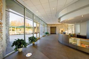 • Organically shaped lobby space edged with Riverwalk stone mirrors the nearby Feather River in shape and composition