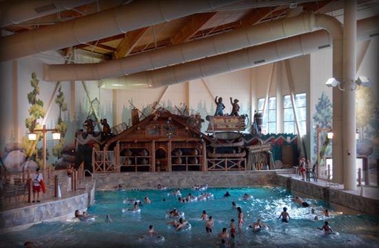 Whether its 10 degrees below or raining cats and dogs, it is always a balmy 84 degrees inside the resort’s mammoth 58,000-square-foot indoor waterpark. Bear Track Landing puts the emphasis on fun with six waterslides, four pools, and a four-story treehouse waterfort.
