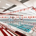 Shortly upon its opening in 2015, five state records were broken, and the natatorium signed on to host the 2017 Indiana State Swimming Championships. Designers attribute the improved speeds primarily to a state-of-the-art gutter system that instantly captures dynamic surge from displacement without bounce-back. But other factors contributed, such as the 2 meters of water under the blocks, wave-quelling lane lines and touch-pad placement.