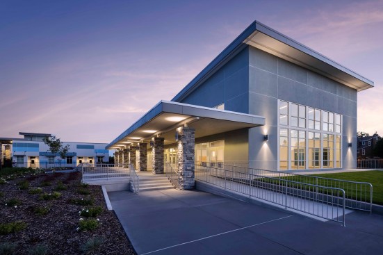 In addition to reinforcing the living-room concept, these sliding doors can be opened up during large events to blend the spaces. Other buildings were positioned to visually block public access spaces and parking, while preserving views of the regional park.