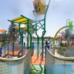 The space already included parks meant for teens and adults. Splashaway Bay, the latest addition, provides a destination for younger children. On one side, kids find five slides that terminate in a 2-foot-deep wading pool. On the other, at a higher elevation, they can frolic in a zero-depth-entry playground with various spray elements.