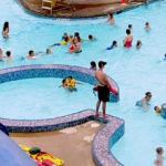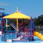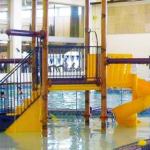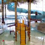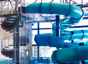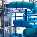 The 16,970-square-foot aquatics center features two pools, one hot tub, two lazy rivers, three vortex pools, three water slides, and two sets of water-playground equipment, with amenities split evenly between indoor and outdoor spaces.