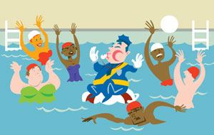 Fortunately, we came up with some simple solutions to solve our aquatic traffic jams. We placed free-standing whiteboards at each entrance to the main pool deck, which gave times, pool location and lane location. Daily lane schedules also were placed by each pool and by the lifeguard stand for easy access. Off-duty lifeguards were made available to help with any question or direction.