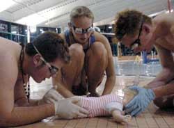 Guards practice assessing ailing or injured guests and learn how to provide basic care for heat-related emergencies, musculoskeletal injuries, fainting, seizures, diabetic emergencies and poisonings. Proper incident reporting also is reviewed.