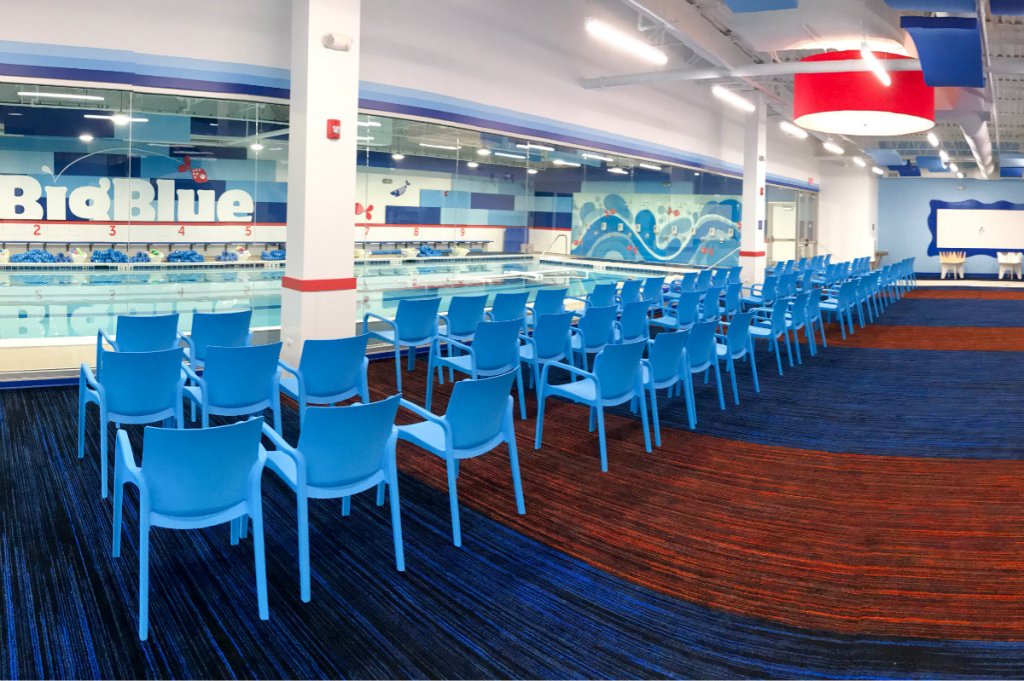 Both schools espouse a more pleasing, parent-friendly aesthetic, emphasizing modern, open spaces to better accommodate families out of the pool. Gone are the garish colors and cartoonish mascots that typify the average swim school. DeJong describes his facilities as the “Apple Store” of swim schools.