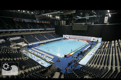 In the clip, you see a pool built special for the championships in the Kombank Arena. It took a week to build and will be stripped back down when the vent is over.