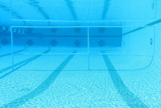 This main pool is shallow on both ends and deep in the middle, providing ample space where students can learn to become comfortable in the water. However, this configuration has one major drawback. One exercise I like students to try, when they feel confident enough, is to swim across a corner of the deep end where the walls form a right angle. But, again, the pool is shallow at both ends, so there is no corner with deep water.