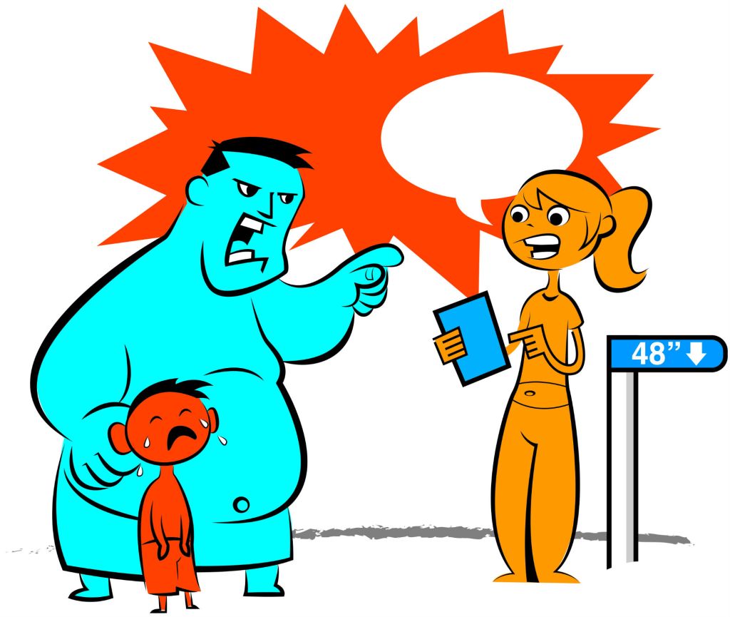 My boss dug out the manual for the Giant Rapid River Ride, and began to scan the pages. She cried, “Aha!” and pointed to a page. There it was in print: the manufacturer’s rules. It stated that if a child was between 45- and 48-inches tall, and an adequate swimmer, they could ride the slide wearing a coast guard approved personal floatation device.