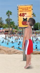 Finally, we have a 1-inch leeway that lets parents make the call whether their children should wear life jackets. This is particularly interesting when the adult wants to pay the under-48-inch price for a child who is clearly over. We allow this, but most of the time the adult comes back for an upgrade to the adult ticket because we require that anyone under 48 inches be accompanied by an adult on all rides and waterfeatures.