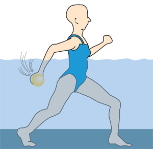 In the water, therapists can use regular land-based equipment, which is old or discarded for pool-based tasks. For instance, an old tennis racket or baseball bat can make the transition into the pool as long as it is not intended for future land-based athletic glory. Grab bars on the pool walls or similar structures are helpful for providing external stabilization; however, flotation devices or therapist support can be substituted.