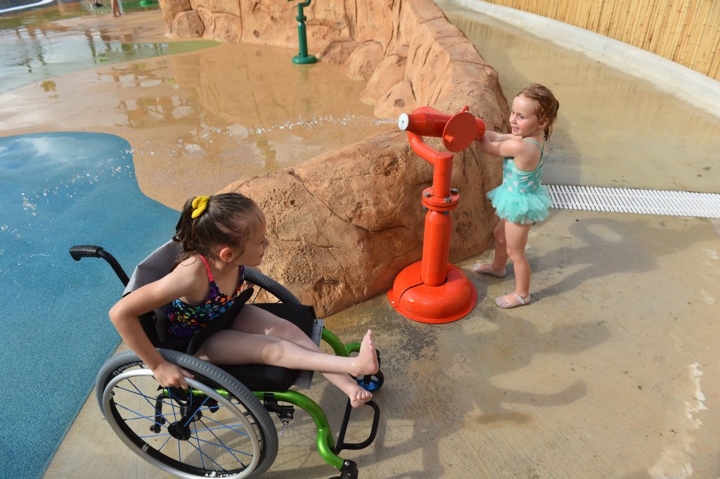 The park, which opened in June, received Aquatics International’s 2017 Dream Design award, and is part of Morgan’s Wonderland, a 25-acre non-profit amusement park. The facility is named after Morgan Hartman, the daughter of park developers Gordon and Maggie Hartman and his wife. Morgan lives with cognitive and physical disabilities, and the parks cater to those who live with similar conditions.