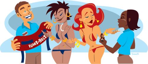 One afternoon, two female members arrived in a state we now refer to as “fully loaded.” Here’s the description: totally dry (nonshowered), tiny bikinis, fully flowing hair, makeup, perfume, jewelry, Gatorade bottles and gum. (Was it Snookie? No, but this is Jersey after all.) Oh, they looked great! And did I mention one was a nonswimmer? They came to use the treadmills, expecting it to be the same as going to the cardio room. It’s not.