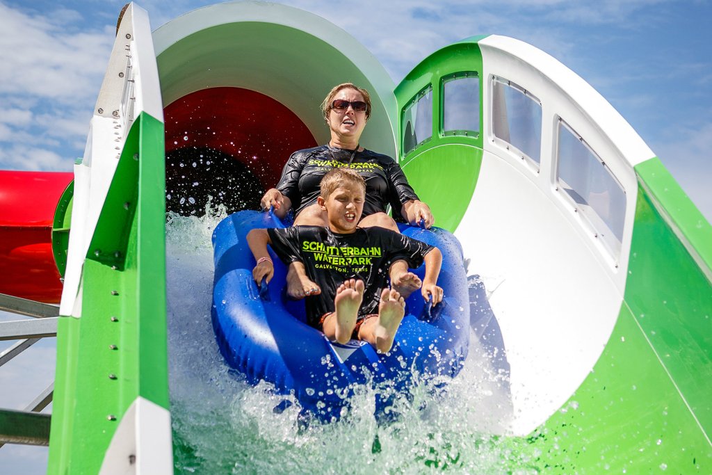 At 81 feet, 6 ¾ inches tall, MASSIV, the new water coaster at Schlitterbahn Galveston Island, utilizes a new energy-efficient system to power people through the slide.
