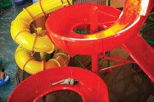 From the thrilling water slides to the activity pool, dip-in theater, indoor adventure river and indoor/outdoor spa, the waterpark was designed with something for everyone to enjoy. It also features in-park concessions, rental cabanas and private party rooms.