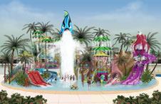 Imagine an aquatic pinball machine where your patrons are the ball! Designed to simulate the arcade-style pinball machine, but on scale 50 times larger, Wizard Works’ Human Pinball water slide concept uses a sloped ramp, approximately 50 feet wide by 150 feet long. Gadgets and gizmos such as flippers and bumpers also have grown accordingly, and riders navigate the course in 8-foot-diameter inner tubes.