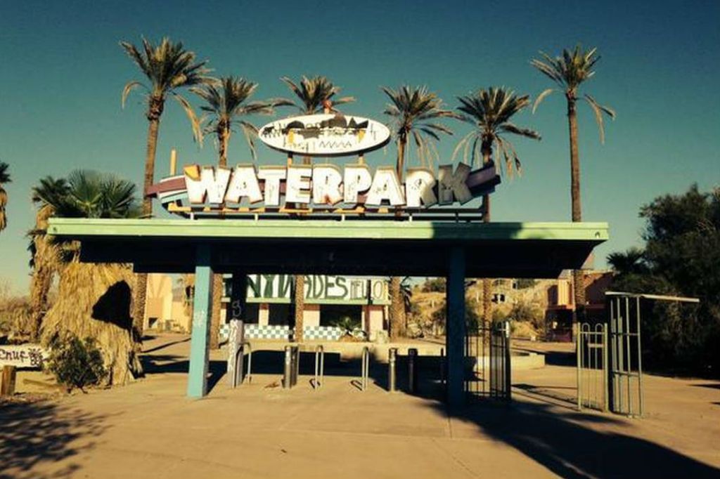Coincidentally, the waterpark shown is the one and only abandoned Mojave Desert-based Rock-A-Hoola Water Park (formerly Lake Dolores Water Park and later Discovery Watepark). And it just so happens that in December, we reported there was talk to reopen the facility.