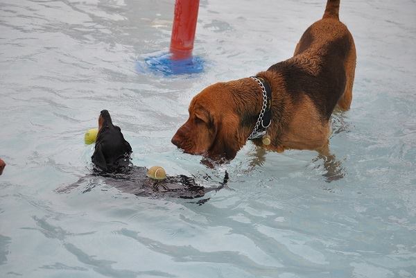 The following Thursday, well-behaved dogs are allowed to come play in the pool.