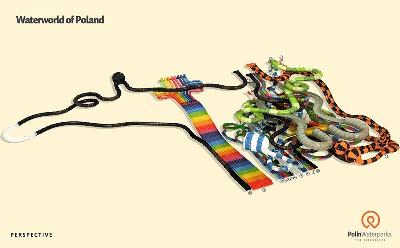 Family Rafting Slide + Family Wave Slide combination. The family slide allows guests of all ages to ridetogether. The second half is Polin’s new high-speed, uphill ride.
