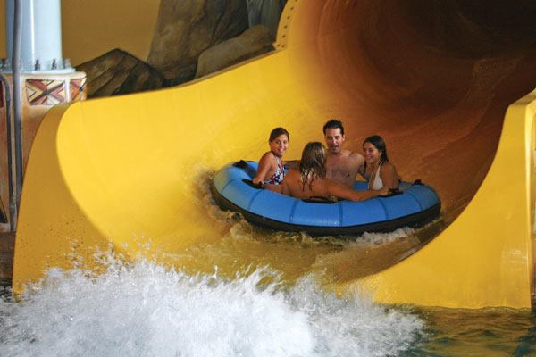 Perhaps the largest indoor waterpark under one roof, this authentically African-themed Kalahari Resorts’ Sandusky property lives up to its motto, “Go Big or Go Home.” Visitors can experience attractions such as the Swahili Swirl bowl slide, four-lane mat racers, a stationary wave machine, an indoor/outdoor spa and a wave pool. A highlight is the state-of-the-art transparent roofing system, which allows enough natural light inside to grow live tropical foliage. The property also includes a 77,000-square-foot outdoor waterpark, Spa Kalahari, multiple on-site dining options, an indoor minigolf course, convention space, Kid’s Club and the Safari Animal Park, opened in 2009. The newest amenity is an African-themed Safari Outdoor Adventure Park, featuring a zipline tour, ropes course and climbing walls.