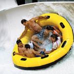 Barrier Reef, the park’s first themed ride, debuted in 1993. The “shark attack” attraction includes themed music and a waiting area that soaks anyone standing in the way. Shotgun Falls, a Western attraction added in 1994, takes riders down a short, fast slide dropping them more than 10 feet into the splash pool below. The newest themed rides are Hollywood Stunt Rider (an enclosed raft ride) and Alien Invasion (a family-style funnel slide).