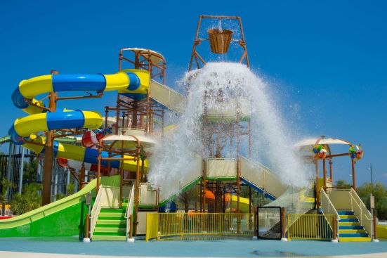 Additionally, the park features Adventure Island, a giant multilevel play structure with countless water gadgets and slides that are suitable for children up to 14 years of age. Younger patrons also can enjoy Kay-Ki Cover, a 15-centimeter-deep toddler pool that features gentle water jets and soft foam sculptures.