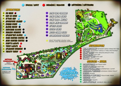 The first phase of Splashworld, which spreads out over 45,000 square meters, opened in late August. Upon arrival, guests are treated to a variety of “custom” water slides, including the 33-meter (108-foot-high) free-fall slide, The Huricana Sliiide; the Banzaii Bomber, an 18-meter-high (59-foot-high) “rocket launch” free-fall slide; the Aloha Racer, Polin’s 17-meter-high, eight-lane, head-first mat racer, which is touted as the largest racing slide in Europe; the water coasters Kina Kuntaa Chutes and Splash Breaker; and the speed-rafting slide the Twisty Turvy.