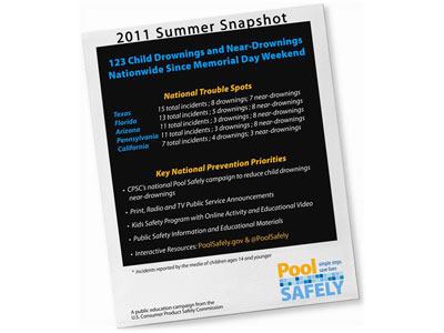 The U.S. Consumer Product Safety Commission’s Pool Safely: Simple Steps Save Lives campaign released its 2011 summer snapshot of the number of drowning and near-drowning incidents across America.