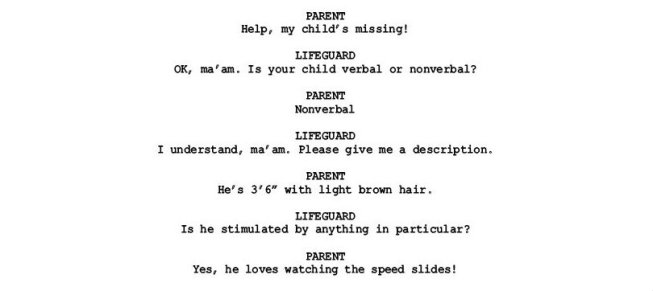 Why it works: Asking about the child’s communication skills (or lack thereof) cuts right to the chase. “This instantly saves time,” says Mike Pastor, training manager at Legoland California Resort. (The Carlsbad theme- and waterpark routinely trains personnel how to effectively interact with people who have cognitive disorders.) It’s a cue that the lifeguard already understands autism, sparing the parent from wasting precious time explaining the child’s condition. Plus, the guard will know how to communicate with the child once he or she is found. “If they’re nonverbal, it’s important to know that they’re not ignoring you,” advises Gary Weitzen, executive director of Brick, N.J.-based Parents of Autistic Children. “He just doesn’t have the physical ability to respond verbally.”
