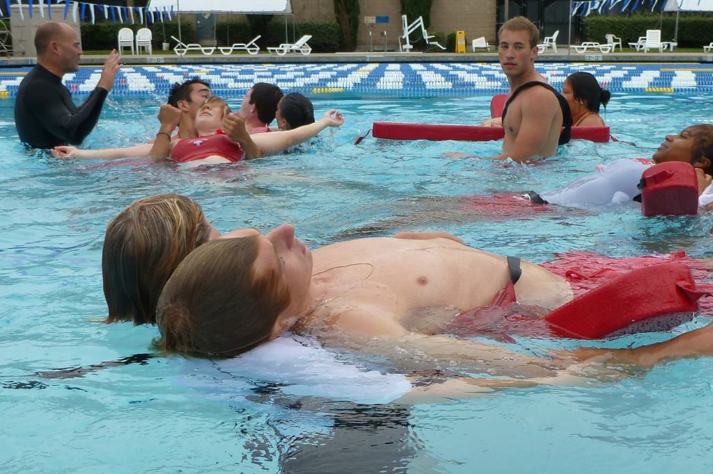 Depending on the specific task, each drill should take 5 to 15 seconds with a downtime between drill repetitions no greater than 10 seconds. This format should allow high repetition and for first- and second-year lifeguards to begin developing skill automaticity. The trainer decides which tasks should be combined to form a sequence and which can be distributed among the lifeguard team to build efficiency and speed. Remember: Most lifeguarding skills can be shared by a team.