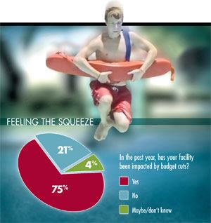 Because virtually all states have to balance their budgets, that means a lot of cuts. And many of those have come at the expense of aquatics. Indeed, nearly 70 percent of aquatics professionals say budget cuts have directly impacted their facilities, according to anAquatics International survey in February 2010. The problem has gotten so bad for Newbury, Mass., the city has been reduced to asking for donations to maintain its lifeguard staff.