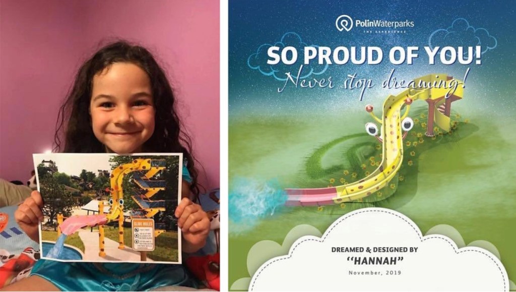 That’s when Turkish water slide company Polin answered the call. They created a 3D model of Hannah’s design and invited Hannah and her family to the industry’s annual conference in Orlando, FL where they will present it to her.