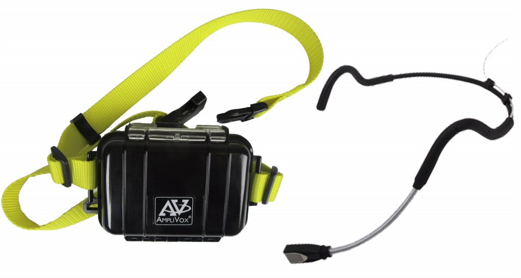 The new Waterproof Fitness package wireless headset by AmpliVox connects with the firm’s Titan Wireless Portable PA, providing powerful sound amplification for activities in and by the water. Its headset is made of adjustable, rubber-coated steel with a bidirectional, noise-cancelling microphone.
