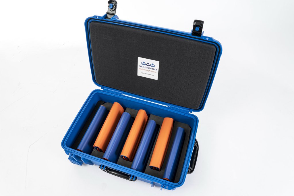 The Auditor’s Kit tests lifeguard surveillance zones. As results are compiled, blind spots become apparent and optimization of surveillance zones is easy to complete. The kit includes seven ANGELS devices and a rolling case.