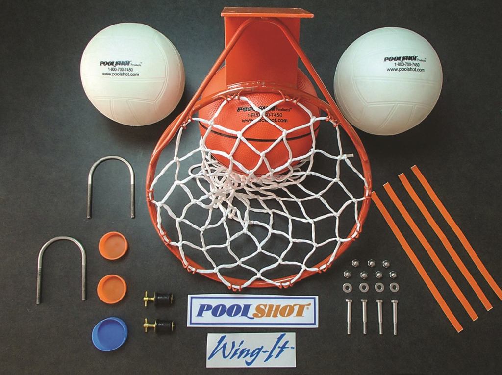 Pool Shot Parts Kits from Backyard Pool Products include 31 different hardware kits, rim kits, net kits and support pole kits for Pool Shot Products water basketball, football and volleyball games. The kits combine the exact replacement fasteners, plugs and other hardware for installing new basketball rims, volleyball nets and other parts. Each kit includes three waterproof basketballs, volleyballs or footballs, plus fresh decals. Kits are pre-packaged, stocked and ready to ship in a single box by UPS. Contact: 440.998.5635; backyardpoolproducts.com