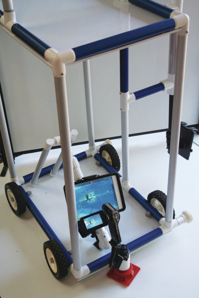 The EyeVideo series from Tropical Penguin gives competitive swimmers the ability to analyze their performance through video. The EyeCart uses adjustable poles and special brackets, along with a “lifeproofed” iPad or any HD waterproof video camera, to record underwater and above, including what coaches call the “catwalk” view directly above while rolling down the deck. Three other parts of the series can fit in a swim bag: EyeSwim, Bottoms UP and EyeCoach.
