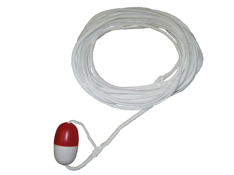 The Kemp USA 60-foot throw line with buoy ball features a polypropylene rope with a sturdy foam ball float. The ball is easily visible in water with its red and white color scheme. It includes a metal ring buoy holder to attach the line to most surfaces. The company recommends purchasing the throw line and buoy ball with every ring purchase. Contact: 914.819.5401; kempusa.com