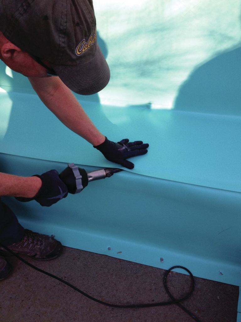 The 60-mil reinforced PVC membrane is welded on site to provide a custom fit for any shape or size pool. Use this Park Pool and Pond Products membrane over cracked concrete pools for a durable, watertight finish. German engineered and stocked in the USA, the PVC membranes are available in multiple colors, patterns and anti-slip textures.