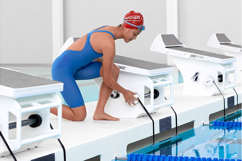 Velocity Starting Blocks are now available with a marine-grade, block style base and integral backstroke start ledge. The track start wedge tucks under the block offering a clear surface for relay exchanges. Single and dual post also available.